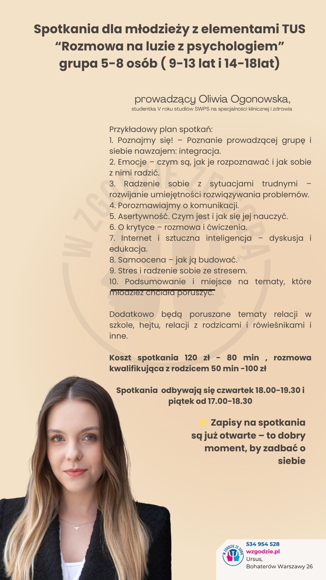 Dla kogo: psychologowie początkujący, osoby w trakcie specjalizacji, psychologowie wchodzący w praktykę prywatną.